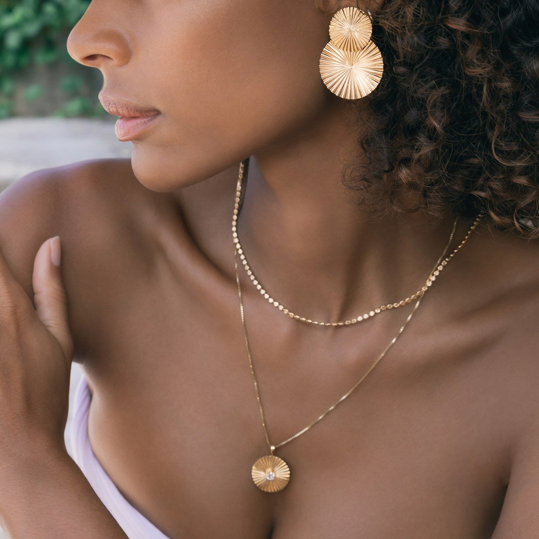 In the picture: Odessa Necklace, Diamond Chain Necklace and Sea Star Earrings