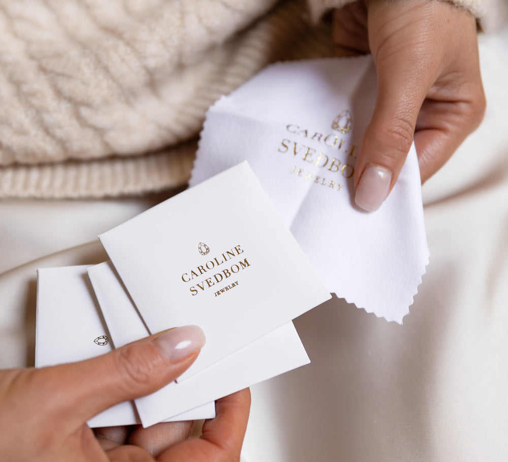 • Torka försiktigt av med mjuk polerduk och förvara i smyckeskrin eller påse.