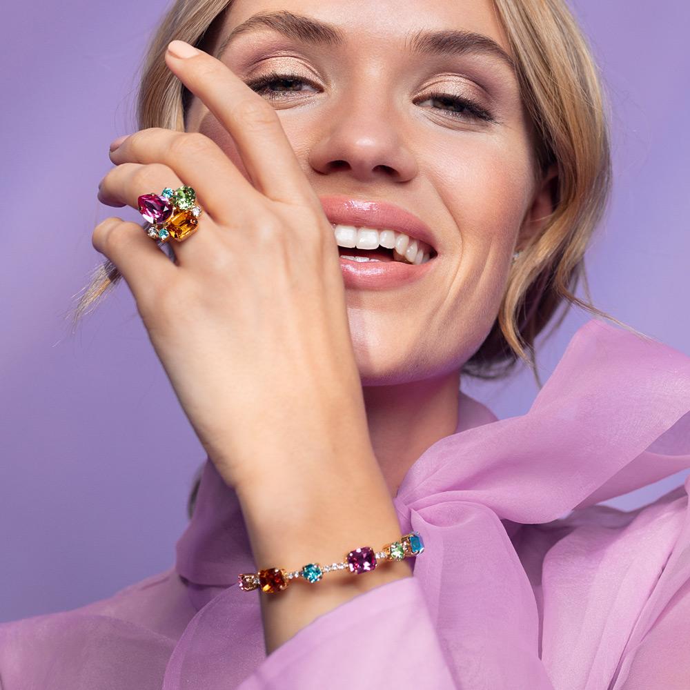 Angelina ringen ser lyxig ut oavsett hur du väljer att styla den. Perfekt för både vardag och speciella tillfällen, låt Angelina ringen glänsa vid din sida. Angelina finns som både armband och ring. Välj Crystal för en klassisk look, eller Rainbow Combo när du vill ha en mer lekfull stil.