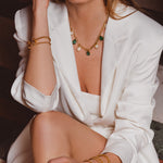 Låt oss introducera Ayra Necklace - ett statement halsband som kombinerar både elegans och attityd! Designen som präglas av både hängande kristaller och glänsande pärlor skapar en fantastisk statement-look som garanterat drar blickarna till sig. Oavsett om du klär upp dig för en speciell tillställning eller vill ge din vardagsoutfit något extra, är Ayra Necklace det perfekta tillbehöret för att höja din stil.