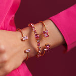 Baguette Armbandet är ett vackert armband med en rektangulär kristall i varje ände. Storleken kan justeras för att passa just din handled. Du kan bära armbandet ensamt för en elegant look eller kombinera det med andra för att skapa en "armbandsstack"-effekt.