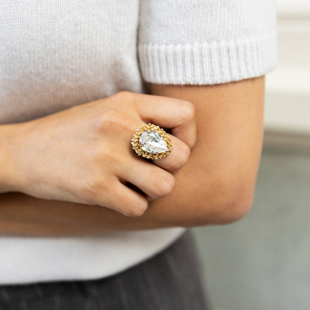 En uppdaterad version av vår bästsäljande Classic Drop ring. Classic Gemma Ring har vår signaturdroppe i centrum, omgiven av subtilt gnister. Elegant, tidlös och lika snygg till denim som till kvällslooken.