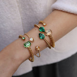 Dara Bracelet är ett elegant armband som hämtar sin inspiration från vår bästsäljare Classic Rope Bracelet. Designen präglas av både en rektangulär kristall och en klassisk rund. Den repinspirerade kedjan har en vacker finish och är justerbar - för att passa alla handleder. Bära den ensam eller kombinera med våra andra armband för att skapa ett perfekt “bracelet stack”.