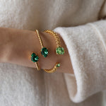 Dara Bracelet är ett elegant armband som hämtar sin inspiration från vår bästsäljare Classic Rope Bracelet. Designen präglas av både en rektangulär kristall och en klassisk rund. Den repinspirerade kedjan har en vacker finish och är justerbar - för att passa alla handleder. Bära den ensam eller kombinera med våra andra armband för att skapa ett perfekt “bracelet stack”.