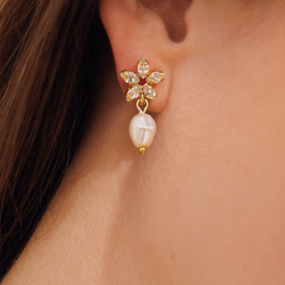 Upptäck Emmy Earrings där elegans möter modern sofistikering. Dessa örhängen har en tidlös design med en hängande pärla som tillför en touch av glamour till varje look. Ett måste i din smyckesgarderob!