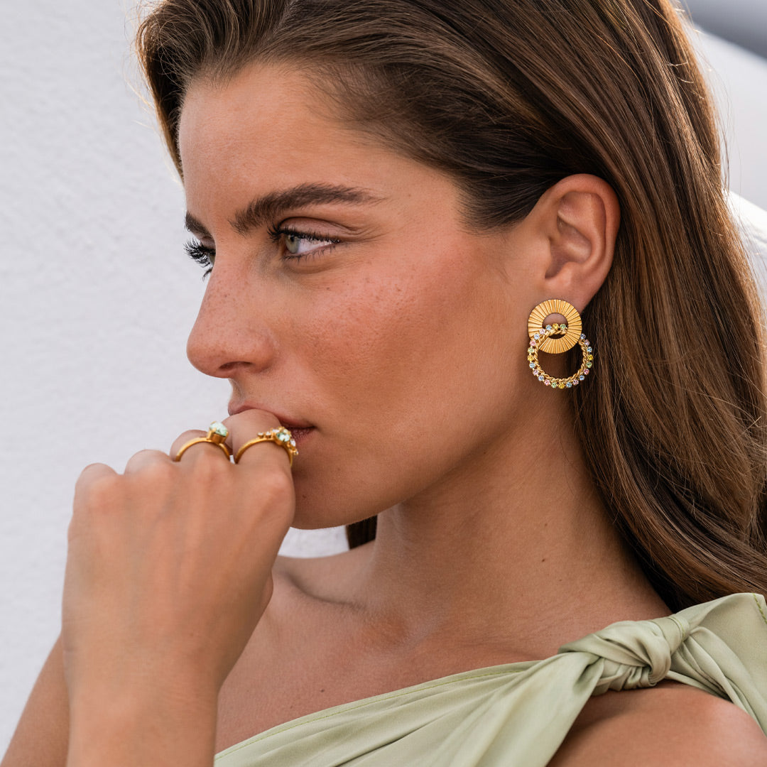 Säsongens coolaste örhänge? Gianna Earrings präglas av en elegant design med fina pastellfärgade kristaller. Dessa örhängen utstrålar charm och kombinerar sofistikering med en lekfull färgklick. Perfekta för att lyfta vilken outfit som helst, dessa örhängen skapar ett statement för både dag och kväll.