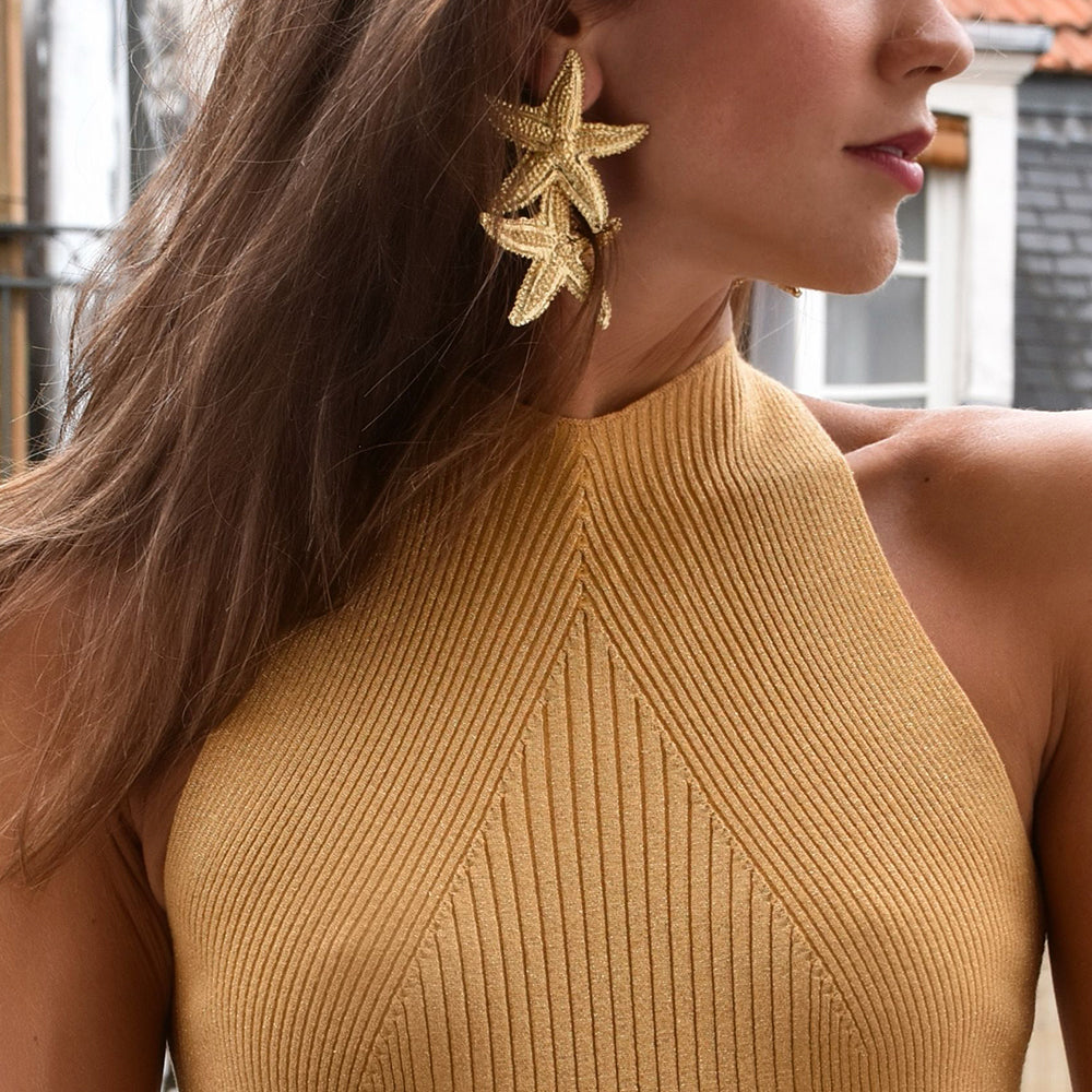 Grande Sea Star örhängena kan mycket väl bli din nya obsession. Smycka dig med detta havsinspirerade smycke för en look som verkligen sticker ut och utstrålar havsvibbar. Genom att bära dessa örhängen hyllar du havet, framhäver den marina livets skönhet och påminner om hur viktigt havet är för oss. Dyk rakt in i det kristallklara vattnet! Levereras med clips.