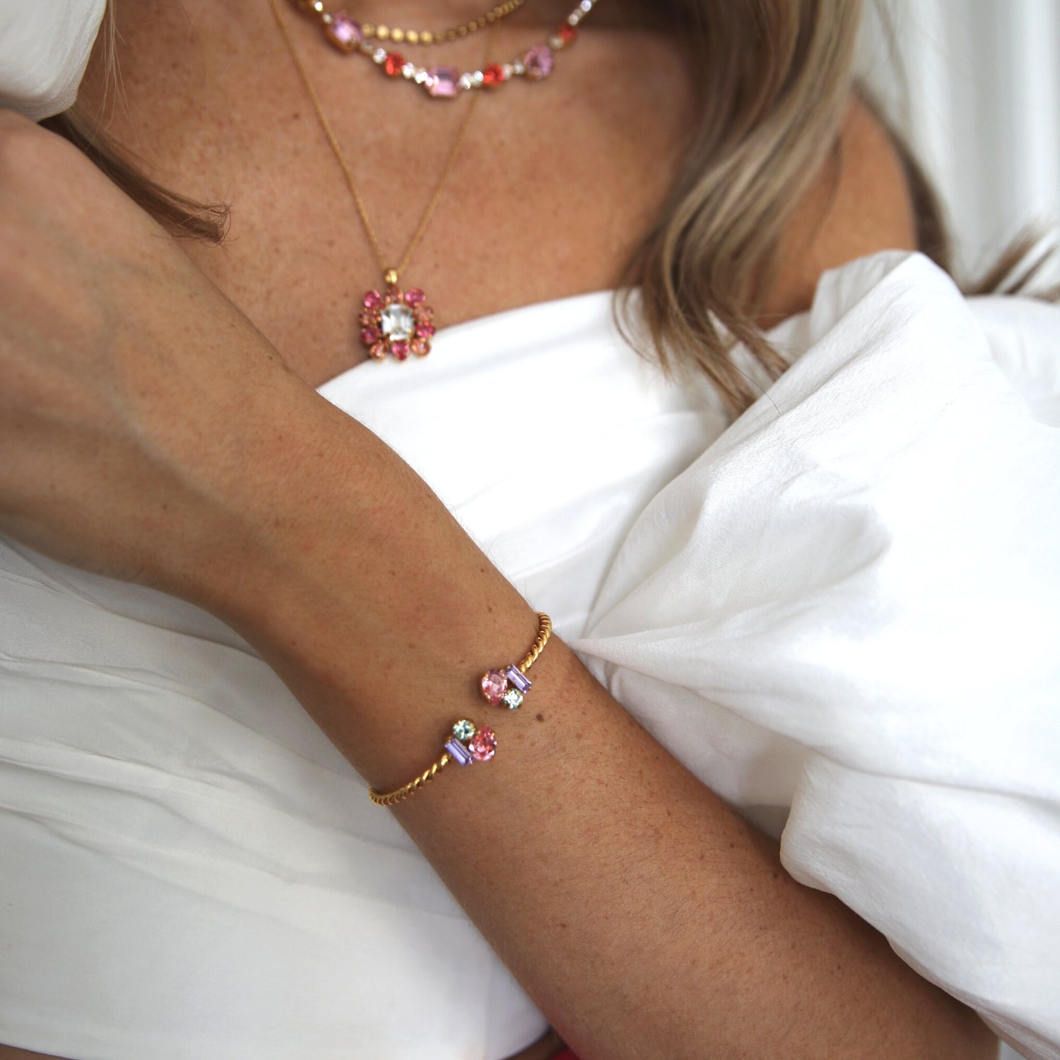 Isa har en vacker kombination av tre olika kristaller med unika former av högsta kvalitet. Perfekt som vardagssmycke eftersom det passar till allt och armbandet är justerbart för att passa just din handled. Isa finns som örhängen, halsband, armband och ring.