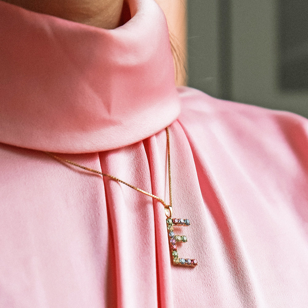 Letter Necklace E / Rainbow Combo