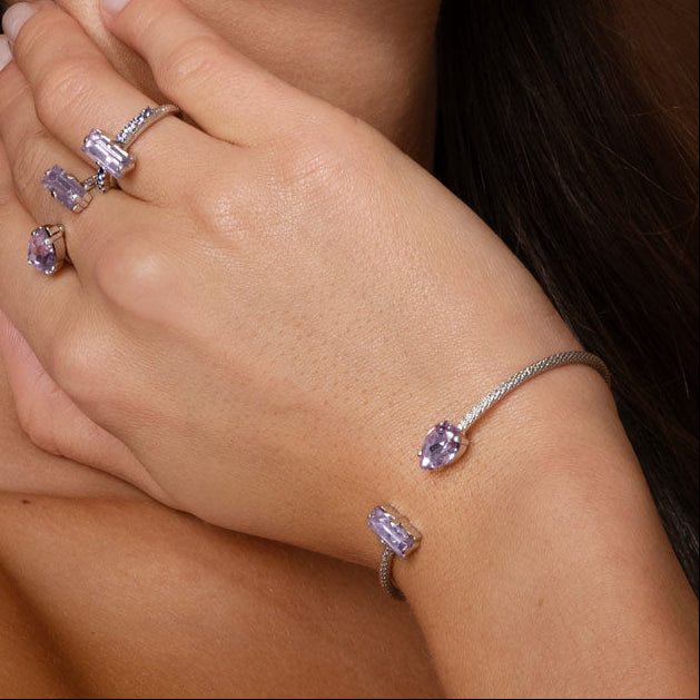 Tidlös, glittrande och oväntat självklar. Lucy Ring fångar blicken med sin form och gnistrande kristall - en modern favorit som funkar lika bra till jeans som till kvällslooken. Kombinera med flera Lucy Rings i olika färger för ett maxat intryck!