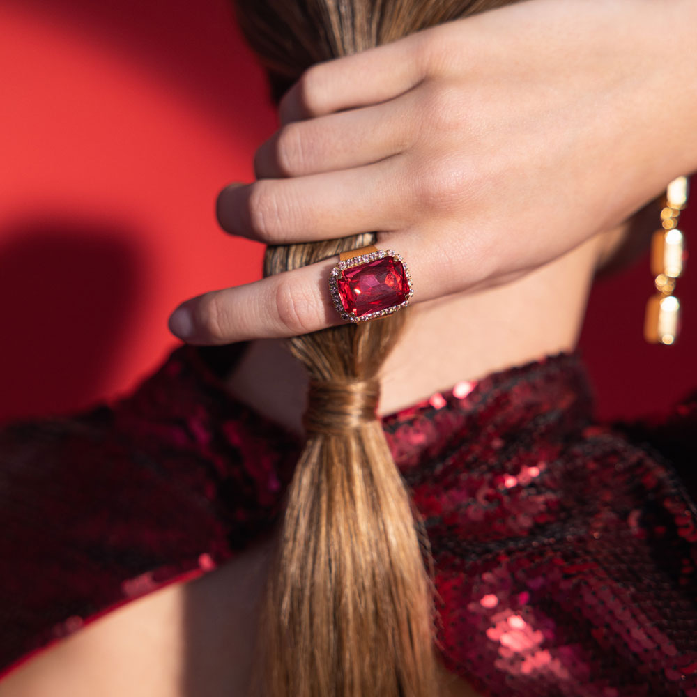 Lydia Cocktail Ring / Mulberry Red + light Rose