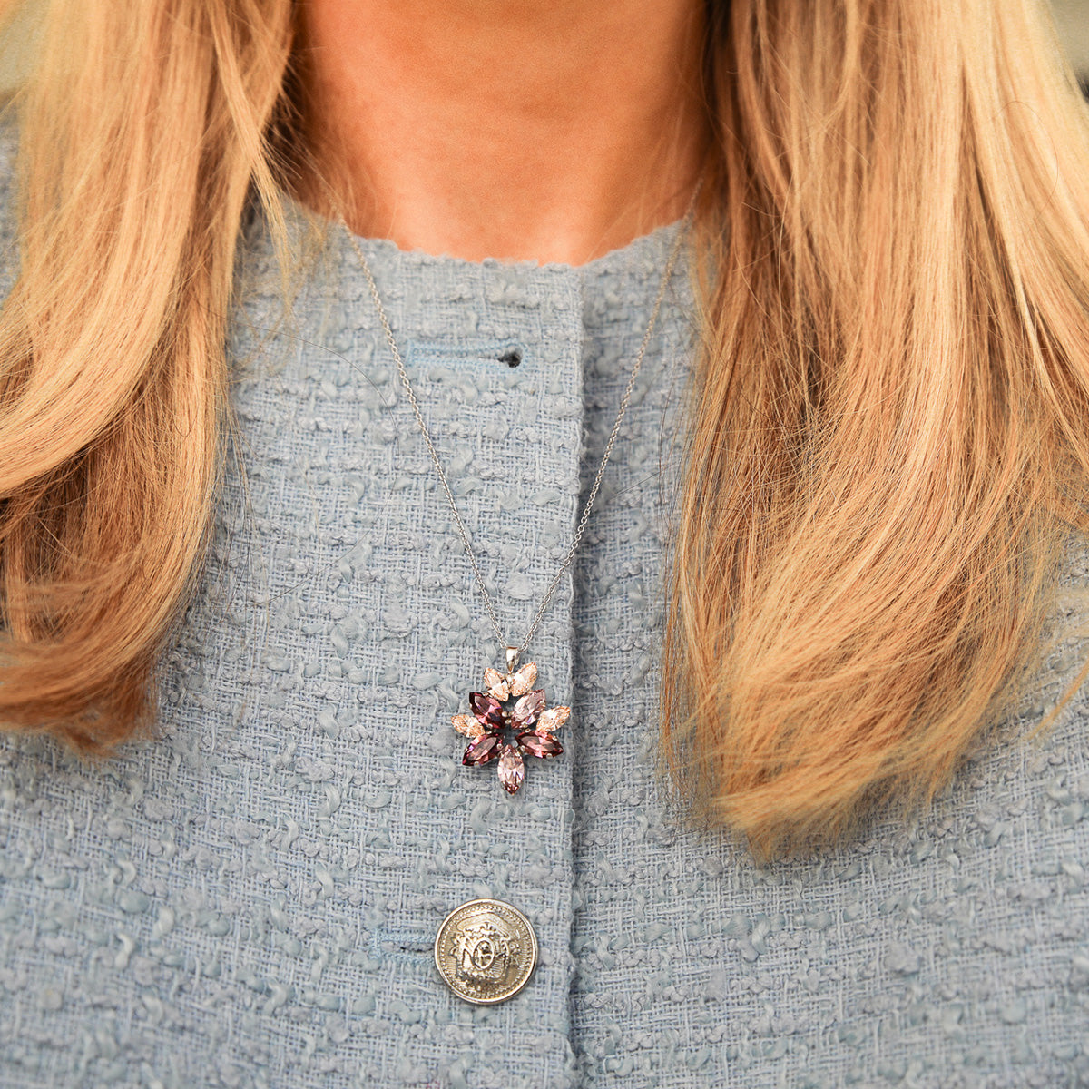 Letar du efter ett statement smycke att bära den kommande säsongen? Vår Melia-kollektion är svaret! Detta fantastiska halsband är tidlöst men samtidigt coolt att styla till dina outfits. Designen har lyxiga navette-kristaller av högsta kvalitet. Styla med Melia-örhängen för en komplett look.