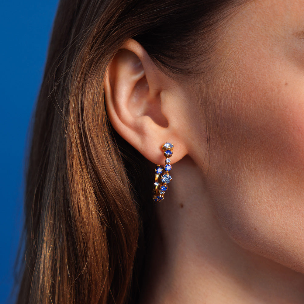 Skapa en elegant look som kommer få din outfit att glänsa lite extra med våra Mini Antonia-hoops. Örhängena är gjorda med runda kristaller av högsta kvalitet.