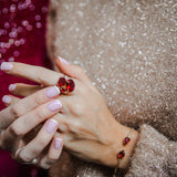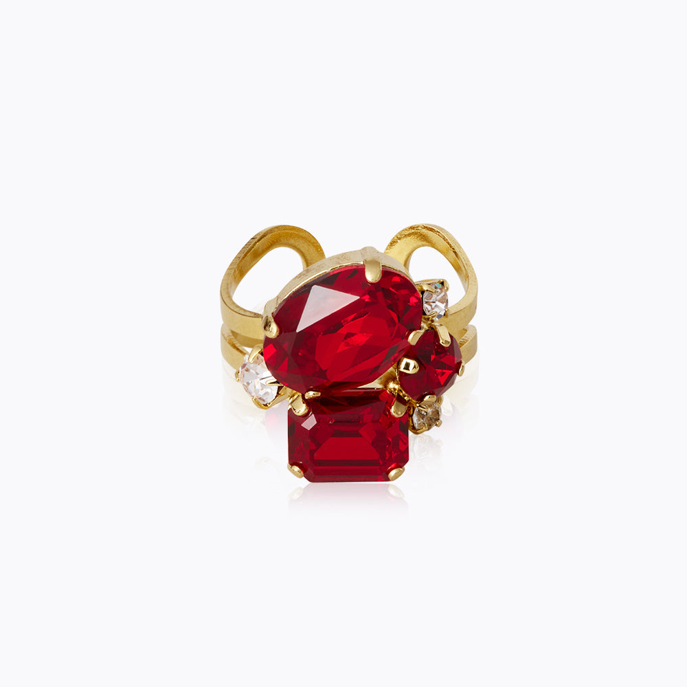 En mindre version av vår bästsäljande Carolina Ring, prydd med fem kristaller av högsta kvalitet. Detta är den perfekta ringen att bära inför säsongens alla festligheter!