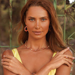 En mindre version av våra populära "Delia örhängen". Denna design är feminin och ger en vacker komplettering till vardagslooken såväl som till festklänningen. De droppformade örhängena med runda glittrande kristaller i olika nyanser ger varje dag den vardagliga glamour som behövs.