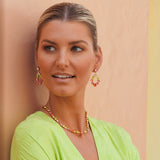 En mindre version av våra populära "Delia-örhängen". Denna design är feminin och ger en vacker komplettering till vardagslooken såväl som till festklänningen. De droppformade örhängena med runda glittrande kristaller i olika nyanser ger varje dag den vardagliga glamour som behövs.