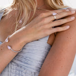 Vårt klassiska Mini Drop Bracelet är en stilfull detalj på din handled och gnistrar tack vare sina två droppformade kristaller av högsta kvalitet. Armbandet har en känsla av rep tack vare den vackert vridna metallen. Storleken kan justeras för att passa just din handled. Detta eleganta och gnistrande smycke passar alla tillfällen.
