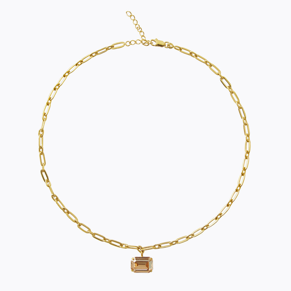 En mindre version av vårt populära Lydia Chain Necklace! Halsbandet präglas av en design som kombinerar tidlös elegans med modern stil. Mini Lydia Chain Necklace är tillverkat av högkvalitativt 18k guld- eller rhodiumpläterat metall och pryds av en gnistrande kristall som tillför en sofistikerad touch till varje outfit. Kedjans unika design och den eleganta kristallen skapar ett smycke som garanterat drar uppmärksamhet vid alla tillfällen.