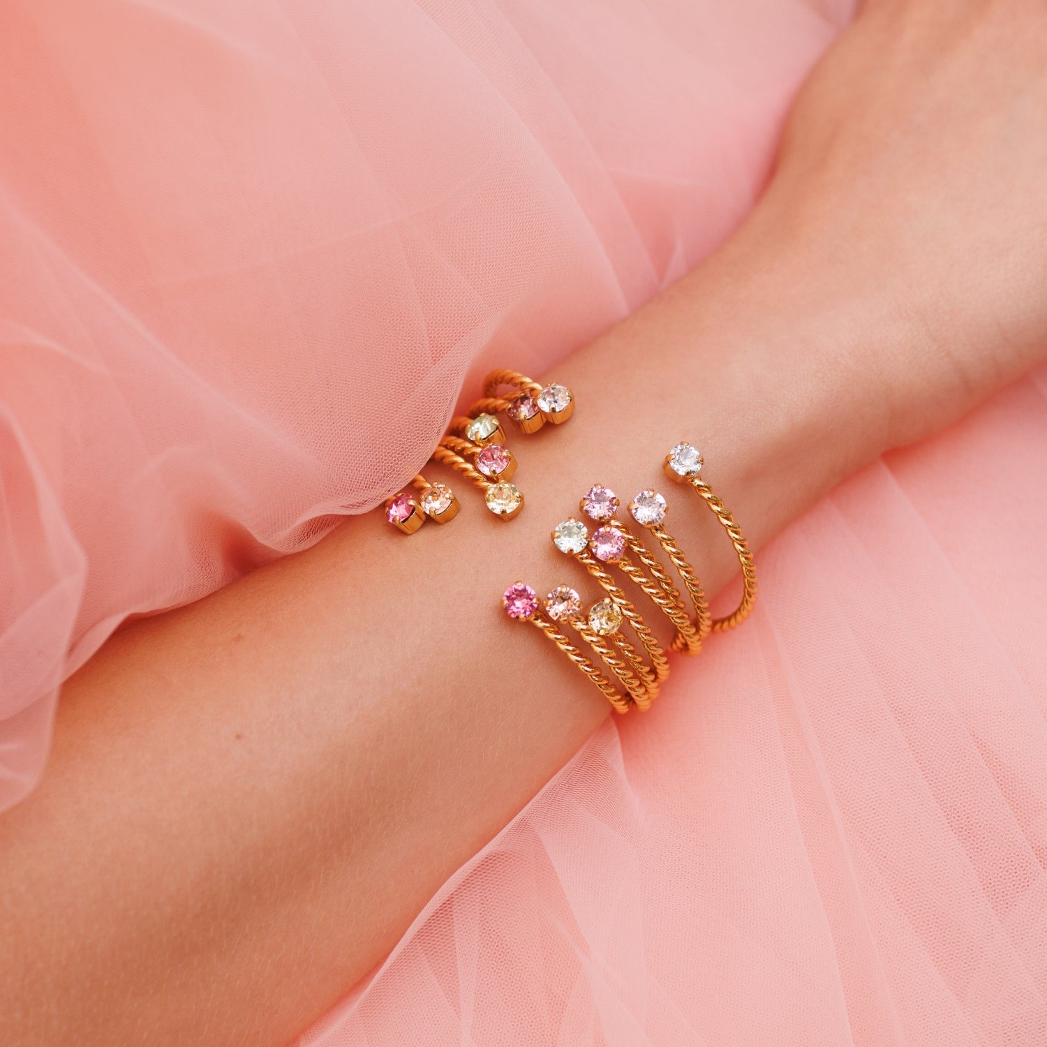 Låt oss introducera vårt Mini Twisted Bracelet, ett måste i din smyckessamling! Det tunna vridna armbandet med kristaller på varje sida kommer att få vilken outfit som helst att glittra med sin nätta och eleganta design. Bär Mini Twisted Bracelet ensamt eller matcha med andra favoriter för ett perfekt “bracelet stack”.