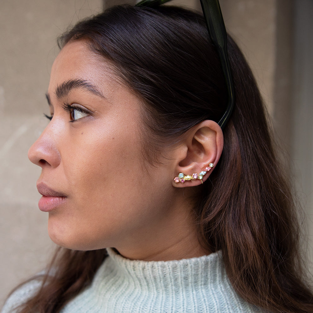 Make a bold fashion statement with our Mirabel Earrings. These cool earrings feature an edgy and unique design, perfect for a stylish look. Available in Crystal and Rainbow Combo.