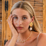 Ett sofistikerat statement, Noeli Pearl Earrings balanserar rik textur med tidlös charm. Med en skulpterad blomsterdesign och ljuvliga barockpärlor är dessa örhängen den perfekta accessoaren för dig som söker glamour med en hint av vintage-romantik.