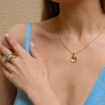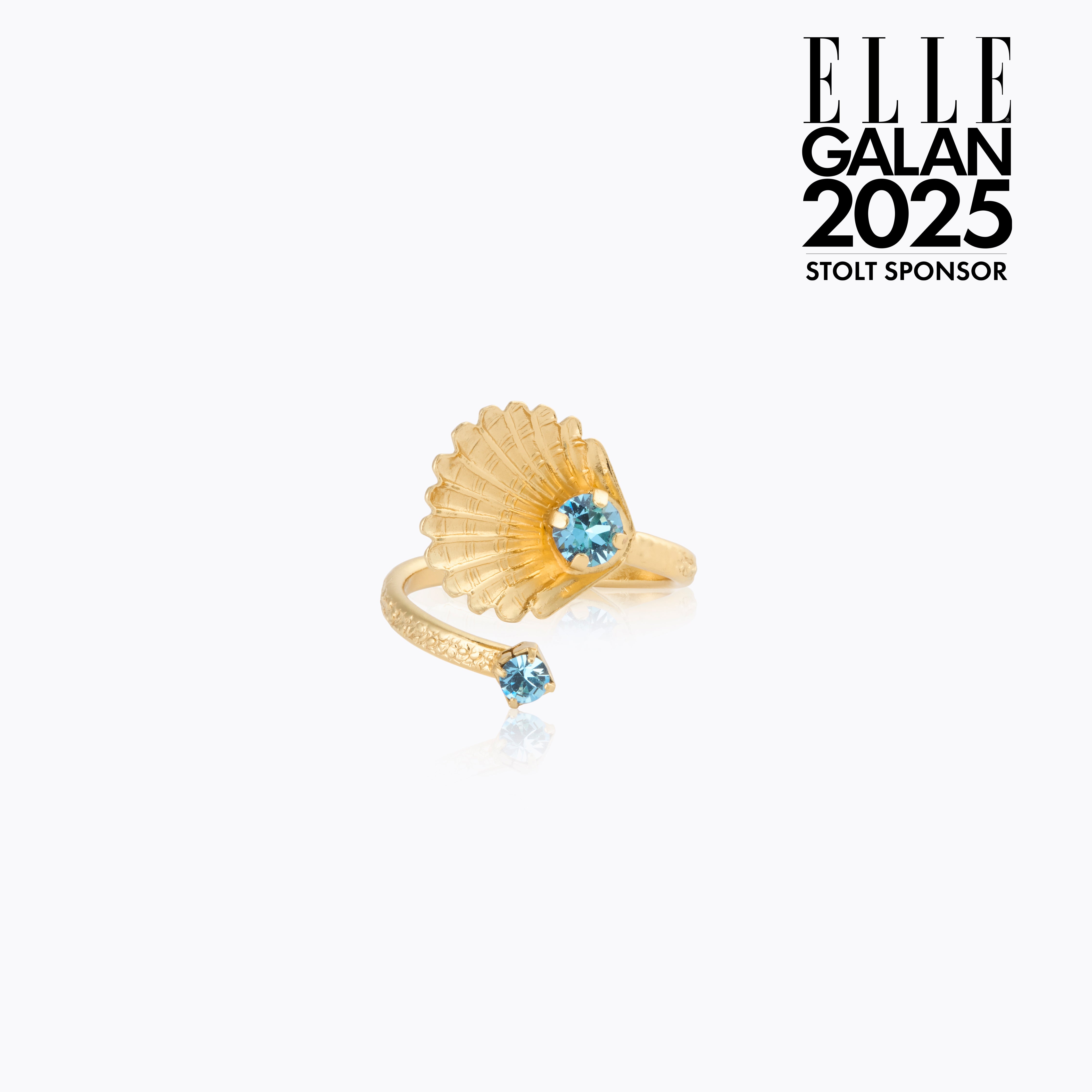 Exklusivt designat för ELLE-galan 2025 - Ocean Treasure Ring är det lilla extra som fulländar din look. Med ett subtilt snäckskal och en glittrande Swarovski®-kristall i Aquamarine förmedlar den en känsla av havsnära harmoni och klassisk elegans.