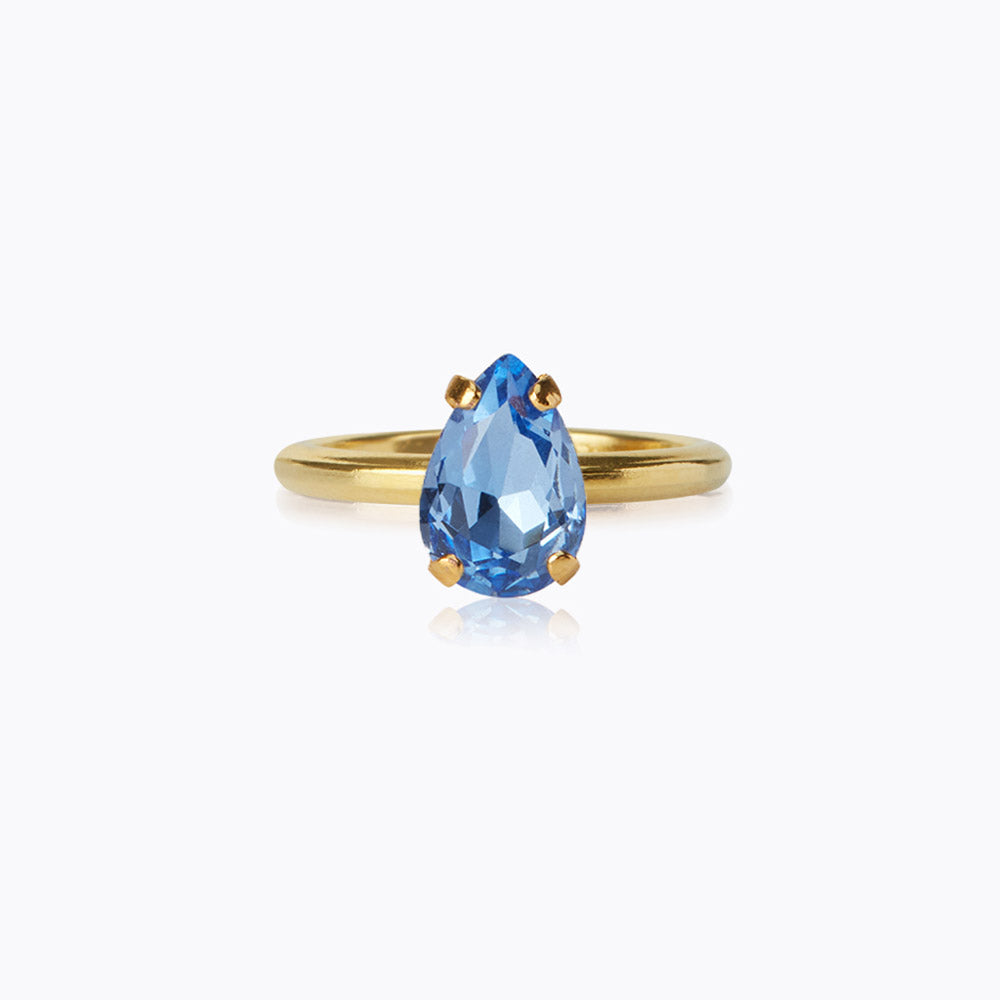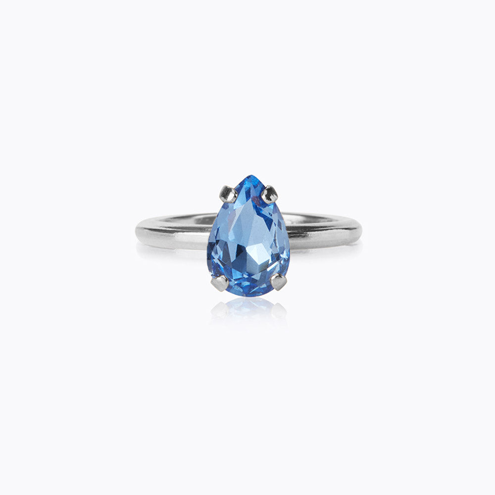 Petite Drop-ringen är en förtjusande ring med en liten droppformad kristall av högsta kvalitet. Basen är tillverkad av 18 karat guld- eller rhodiumpläterad mässing och är justerbar för en perfekt passform. En ring som kompletterar alla stilar, både till vardags och till fest.