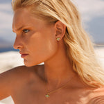 Collection med örhängen och halsband. Den gamla talismanen tros avvärja negativitet och erbjuda skydd till bäraren. De vackra kristallerna i mitten representerar god karma och inre frid.