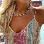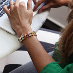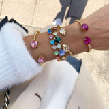 Pomona Bracelet reminds us of a beautiful rainbow with its fantastic color combination. The ultimate feminine statement bracelet with a playful blend of colorful quality crystals.