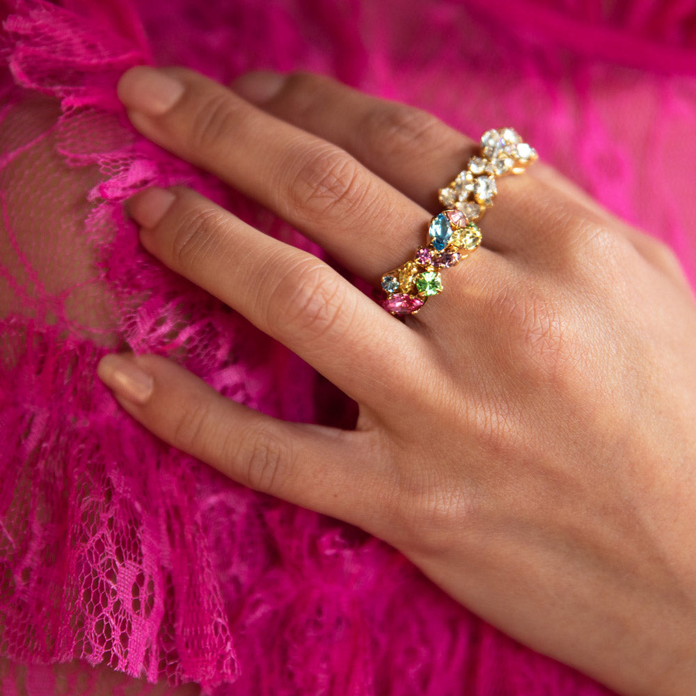 Be prepared for a flood of compliments in our Stella Ring. Bejeweled with some eye-catching crystals, this sparkling statement-ring is the definition of timeless elegance. Combine it with our ”Stella Earrings” for a complete look.