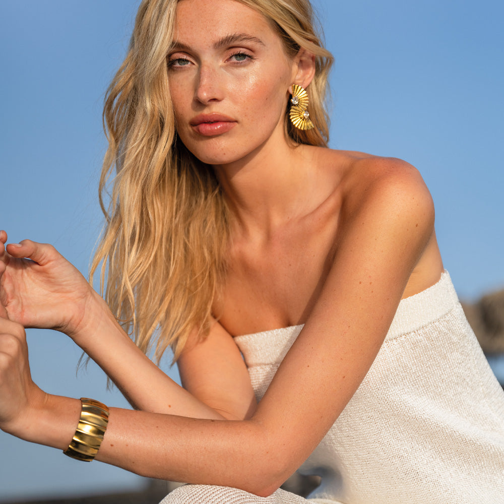 Vicky Bangle är det perfekta smycket för att skapa din egen grekiska gudinna look. Med sin coola form ger den ett sofistikerat och stilmedvetet intryck - lika snygg att bära ensam som i kombination med andra armband.